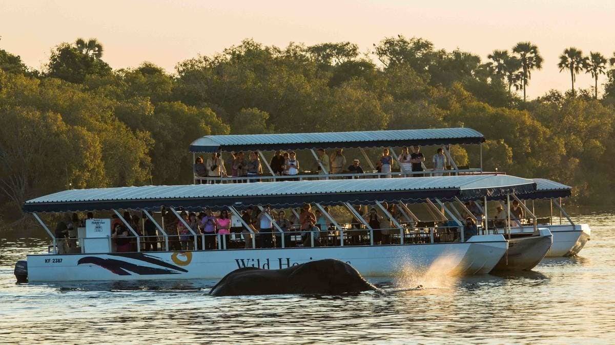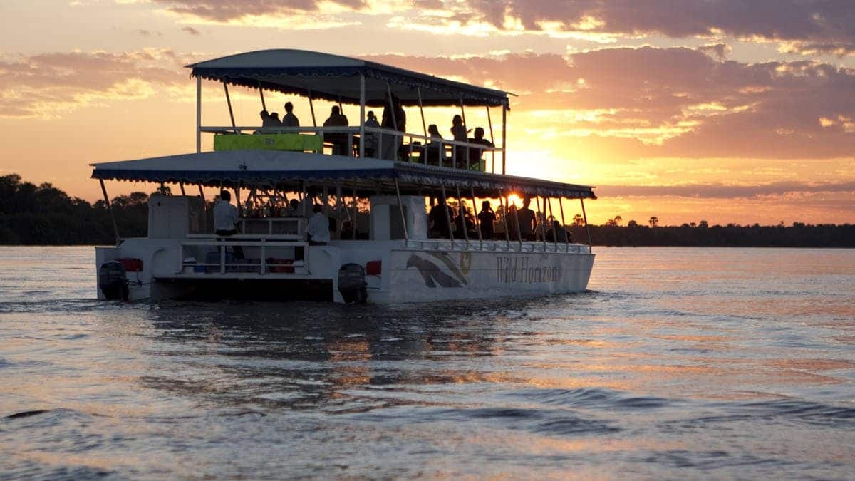 Voir le coucher de soleil sur la magnifique rivière Zambèze sur une croisière / safari en soirée (durée : 2h00). Prenez un verre de Champagne en croisière le long de la célèbre rivière africaine, en regardant la faune nager, boire et se baigner. Faites attention aux hippopotames, aux crocodiles, aux éléphants et plus encore, profitez de collations illimitées de petits fours et des boissons.