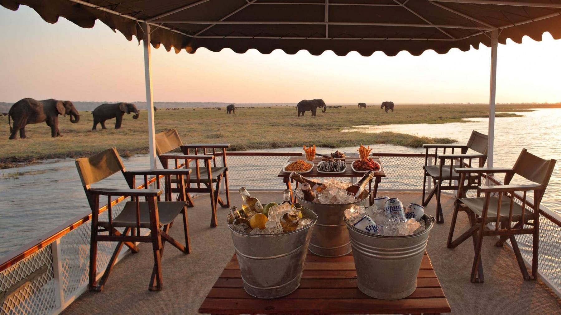 Profitez du coucher de soleil pour vous diriger vers la rivière Chobe. Partez en croisière à la découverte de la nature qui est en pleine activité. Des troupeaux de zèbres, d’éléphants ou de buffles viennent s’abreuver. Vous pourrez y observer des crocodiles ainsi que des hippopotames.