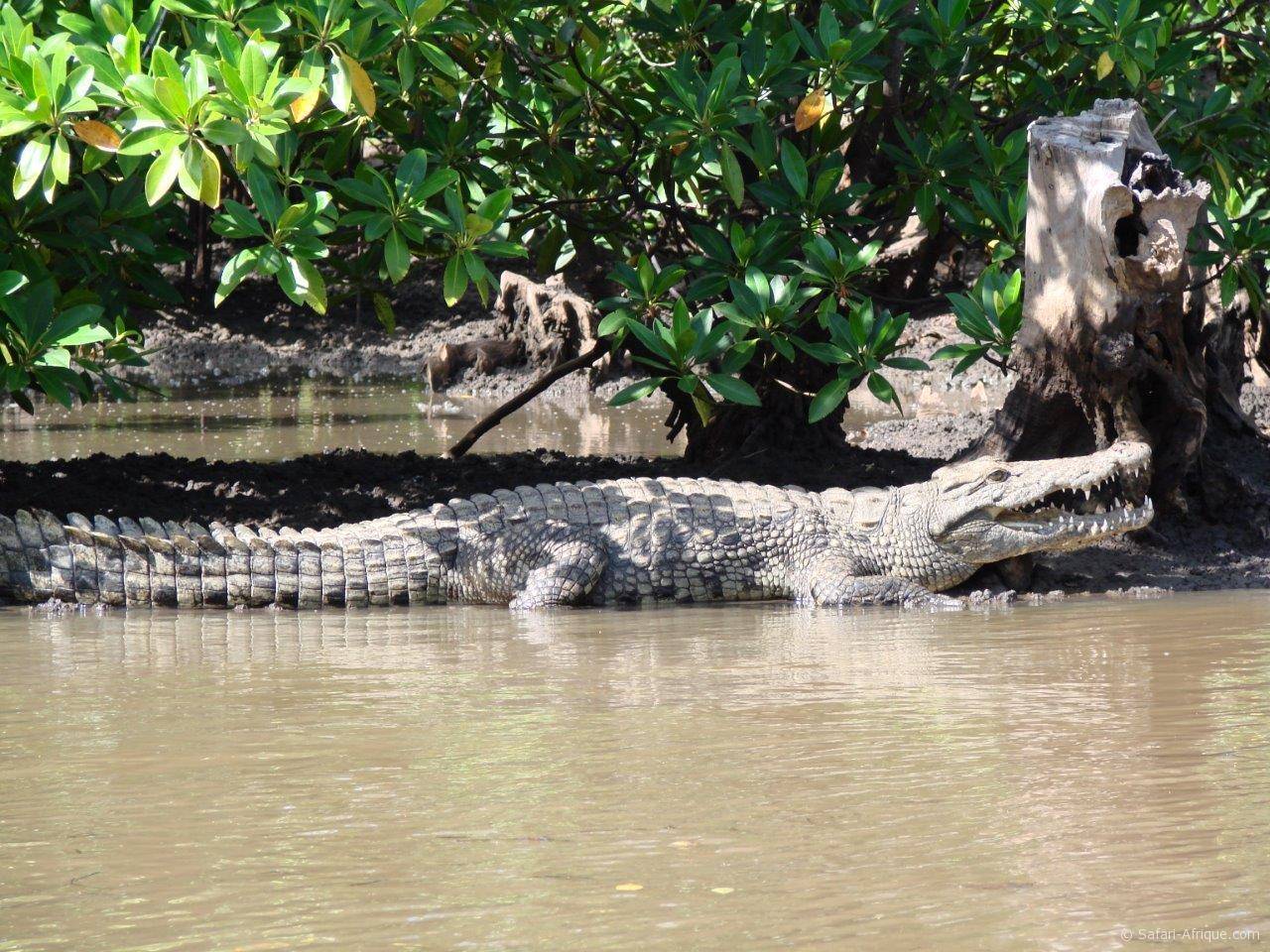 Visite de l’île entourée de MANGROVES, d’îlots inhabités et de bancs de sable. La découverte en pirogue motorisée vous permettra de vous promener dans les BOLONGS et voir ses crocodiles et ses multiples espèces d’oiseaux. (aigrette, aigle pêcheur, martin pêcheur, héron etc)
