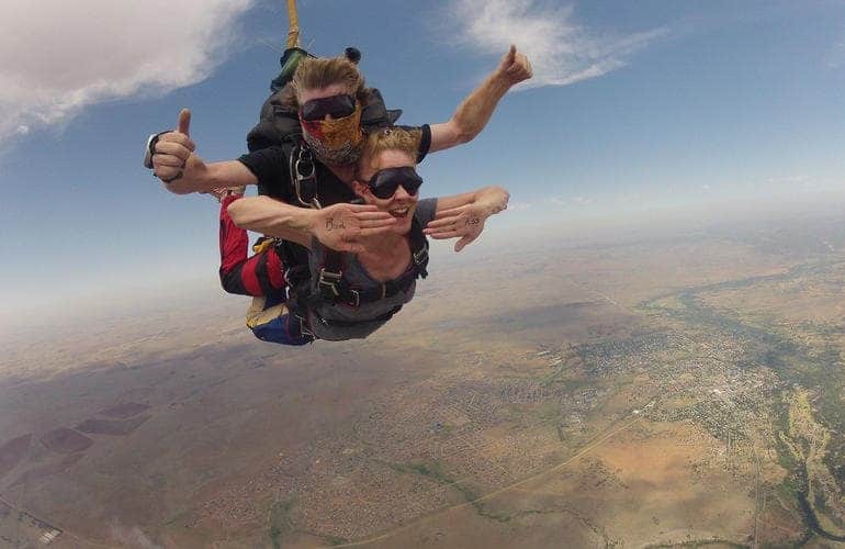 Profitez d’un saut en parachute pour observer le Dôme de Vredefort, astroblème (impact de météorite) le plus ancien du monde. Lors de ce saut d’environ 5 à 7 minutes, vous aurez peut-être l’opportunité de diriger le parachute après votre chute libre.