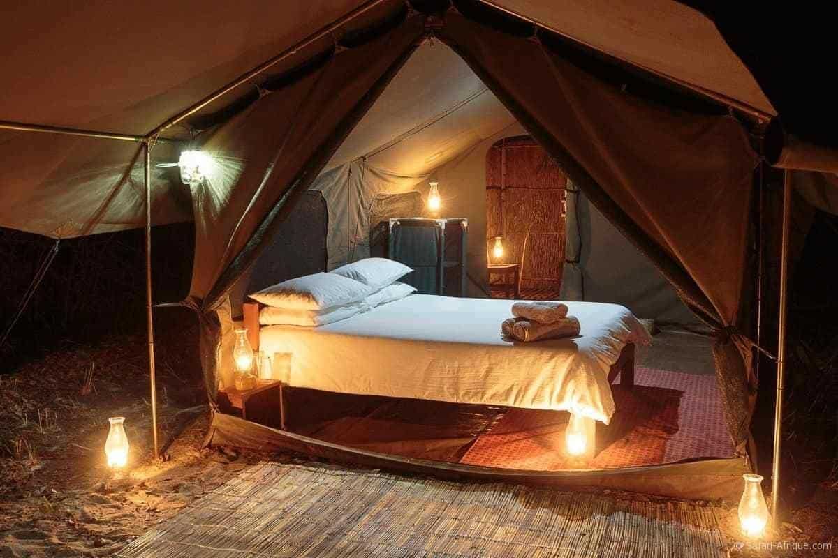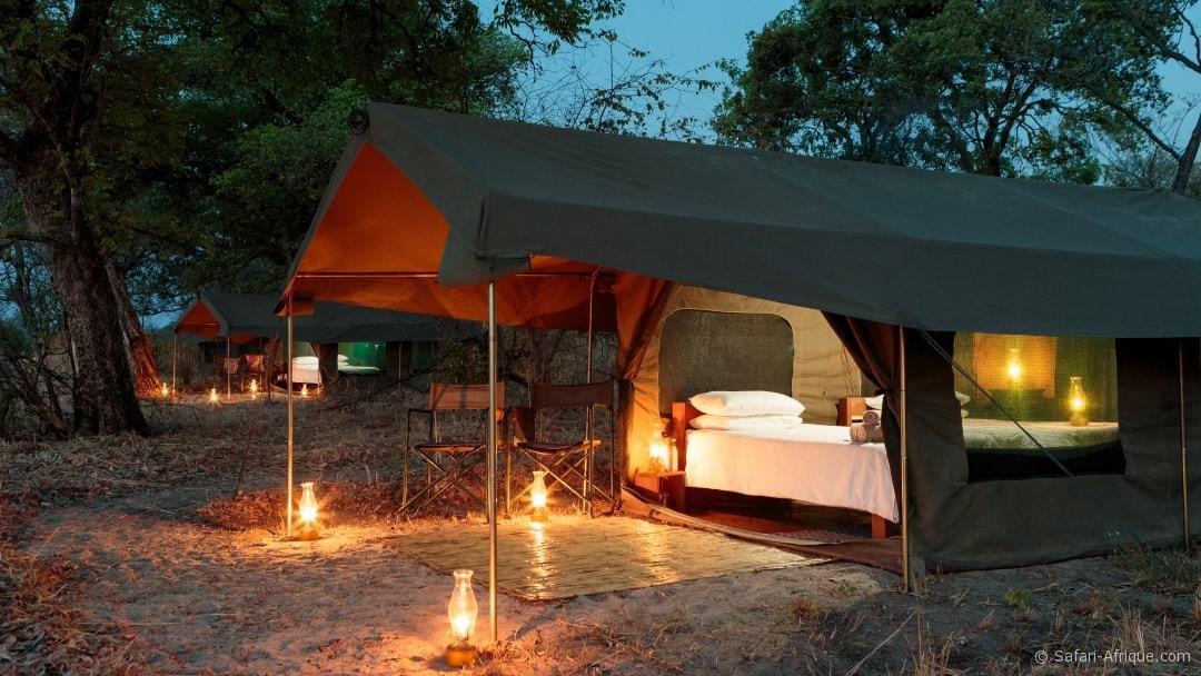 Le camp de Nkonzi propose 4 tentes safari avec salle de bains, confortables et rustiques, ainsi qu’un service personnalisé. Chaque tente comprend des lits encadrés en bois, des draps en coton blanc, un petit coin salon et un éclairage solaire. Les suites en plein air ont des douches à eau chaude et des toilettes à chasse d’eau.