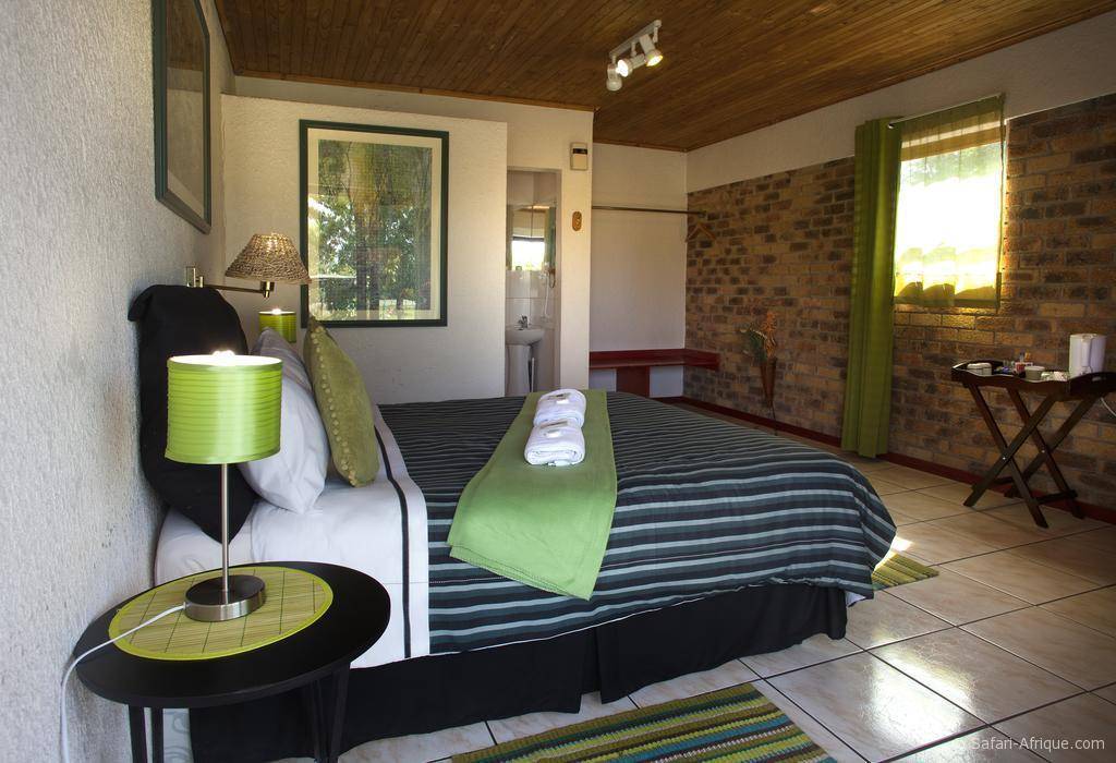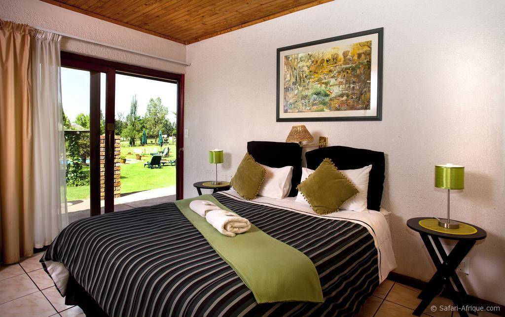 Les chambres modernes offrent une vue sur les jardins et la rivière Rietvlei.