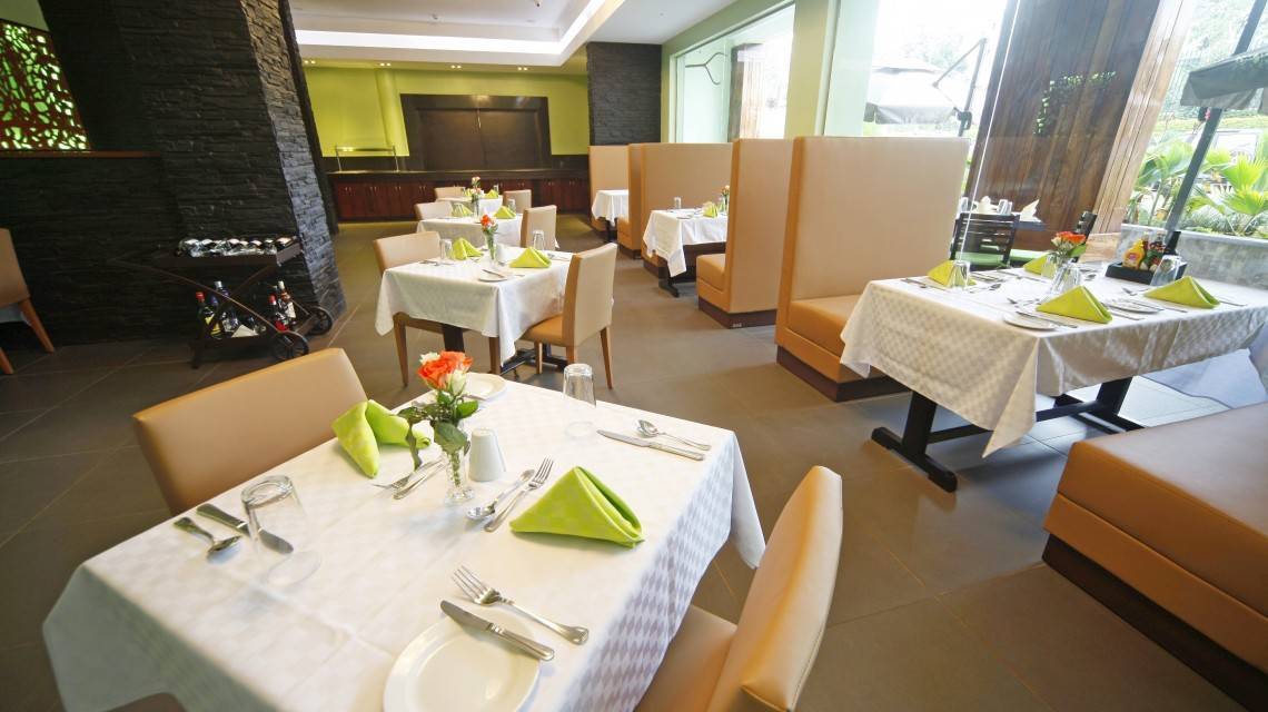 Le restaurant de l’hôtel propose une cuisine internationale variée.