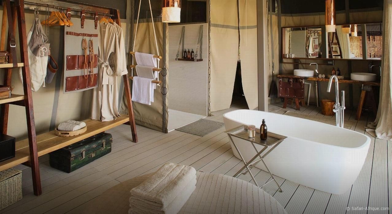 Le lodge propose six tentes de safari luxueuses et spacieuses, dont une tente familiale avec deux chambres et deux salles de bain.