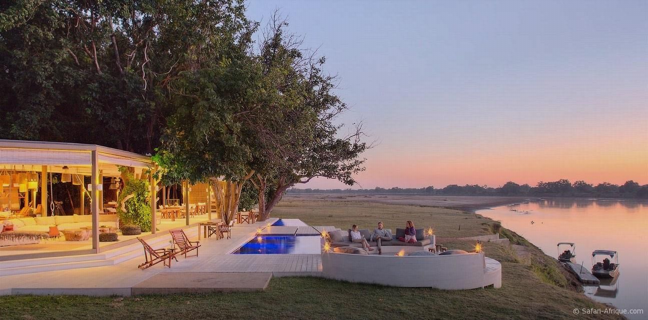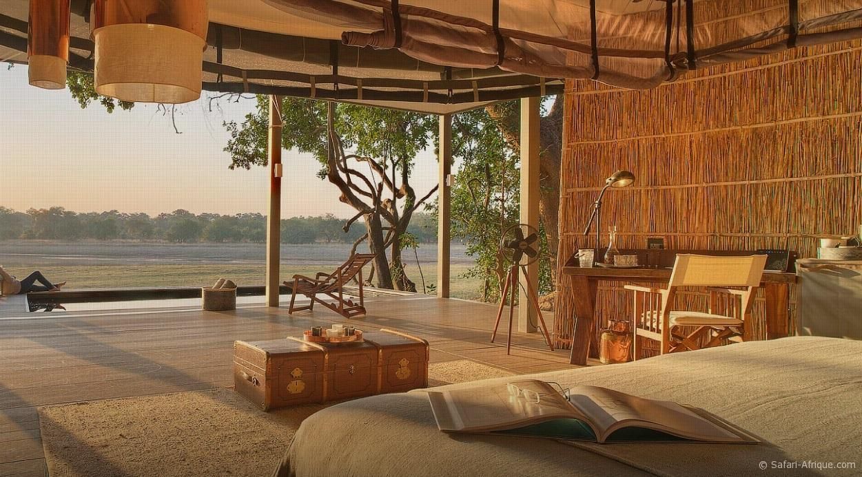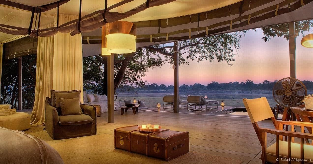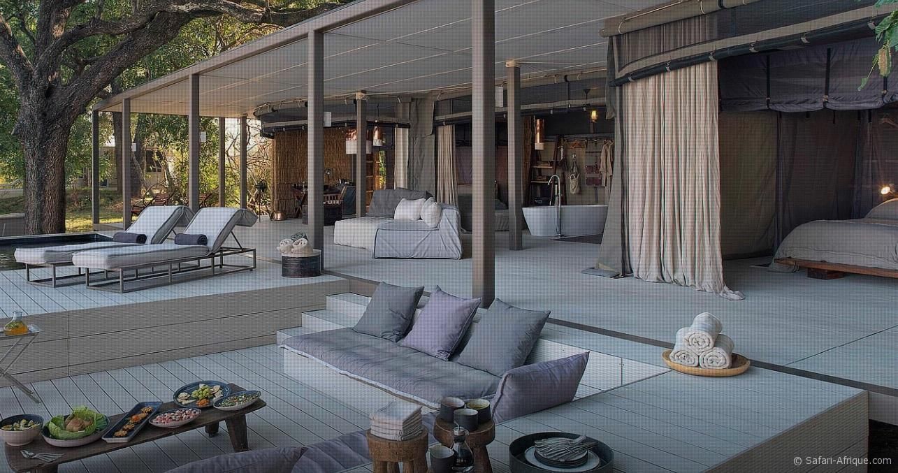 Installées sous des arbres msikizi centenaires, elles disposent toutes d’une piscine privée et d’une baignoire avec vue panoramique sur la rivière et la faune environnante.