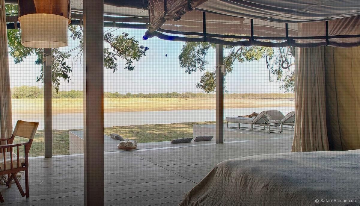 Depuis votre véranda, profitez d’une vue imprenable sur une large courbe de la rivière Luangwa et laissez-vous bercer par les sons de la nature, notamment le mugissement des hippopotames.