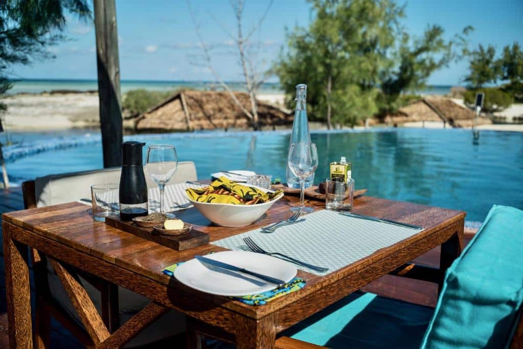 La cuisine met à l’honneur les saveurs du Mozambique avec des produits frais et locaux, notamment des fruits de mer.