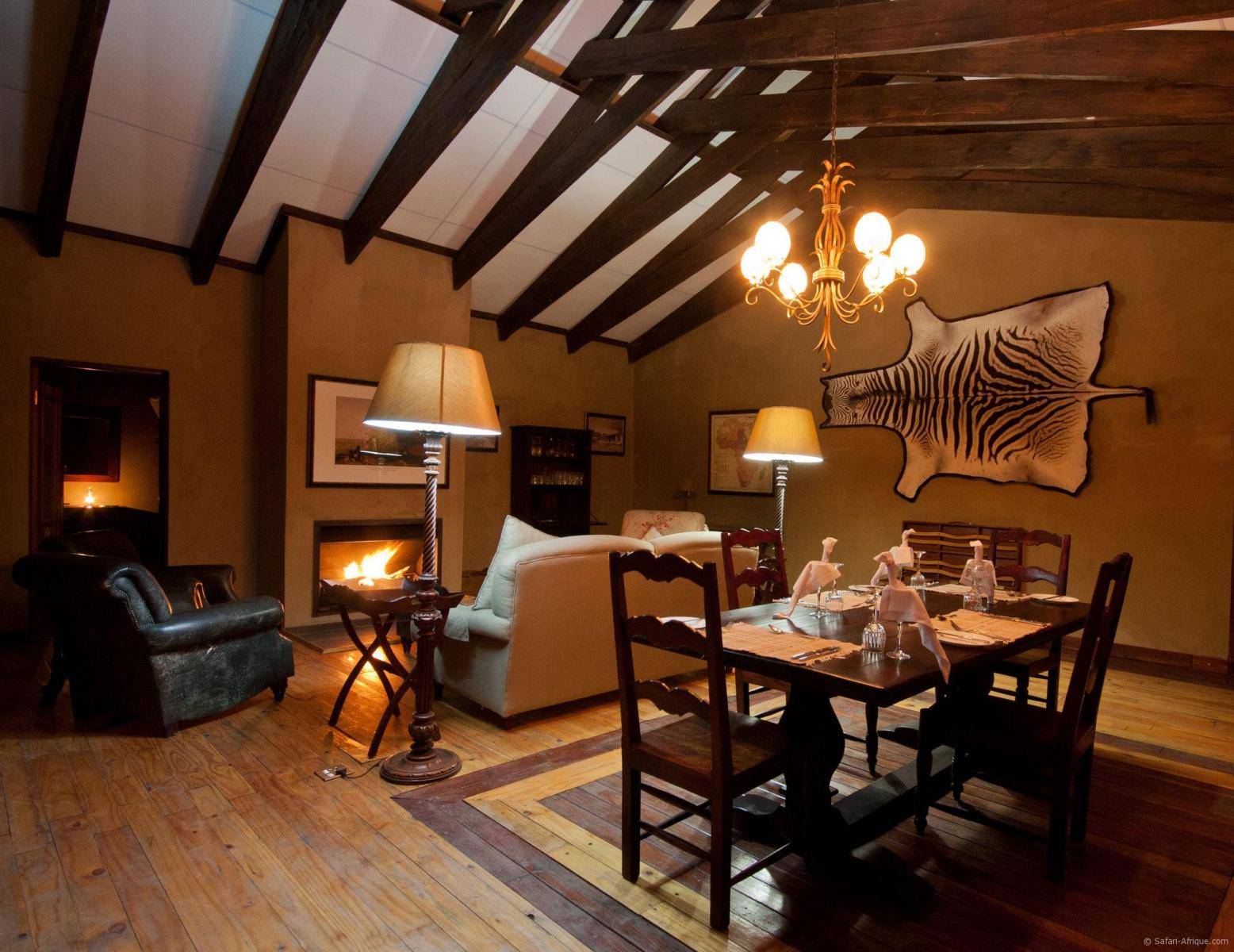 Les repas sont servis dans un boma traditionnel, sous le ciel étoilé africain.