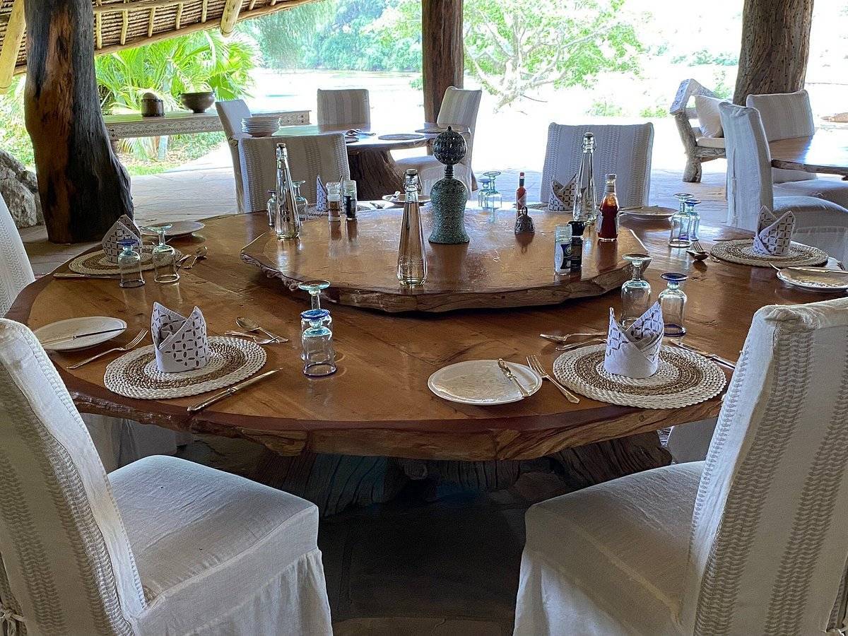 Les repas sont servis à table, dans un espace conçu pour profiter de la vue sur la rivière et observer les animaux.