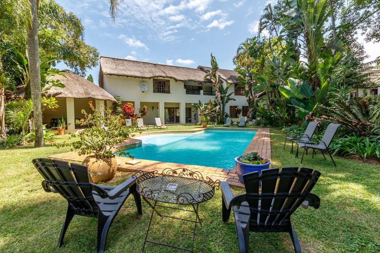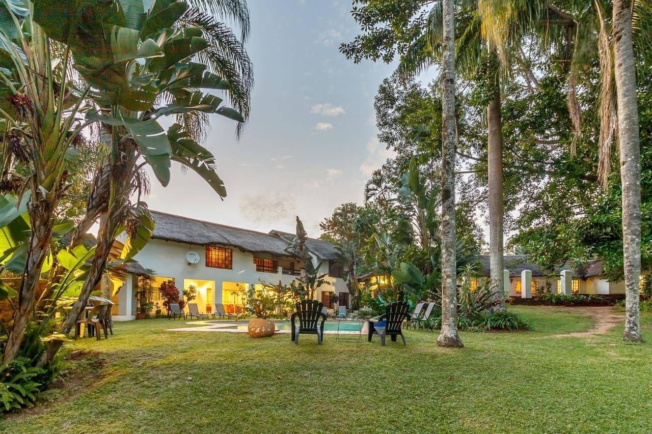 La maison principale, au toit de chaume, est nichée au cœur de magnifiques jardins et offre un cadre idéal pour l’observation des oiseaux ainsi que de nombreuses espèces animales telles que les singes, les porc-épics, les bushbucks, les duikers gris et même le très rare duiker rouge.