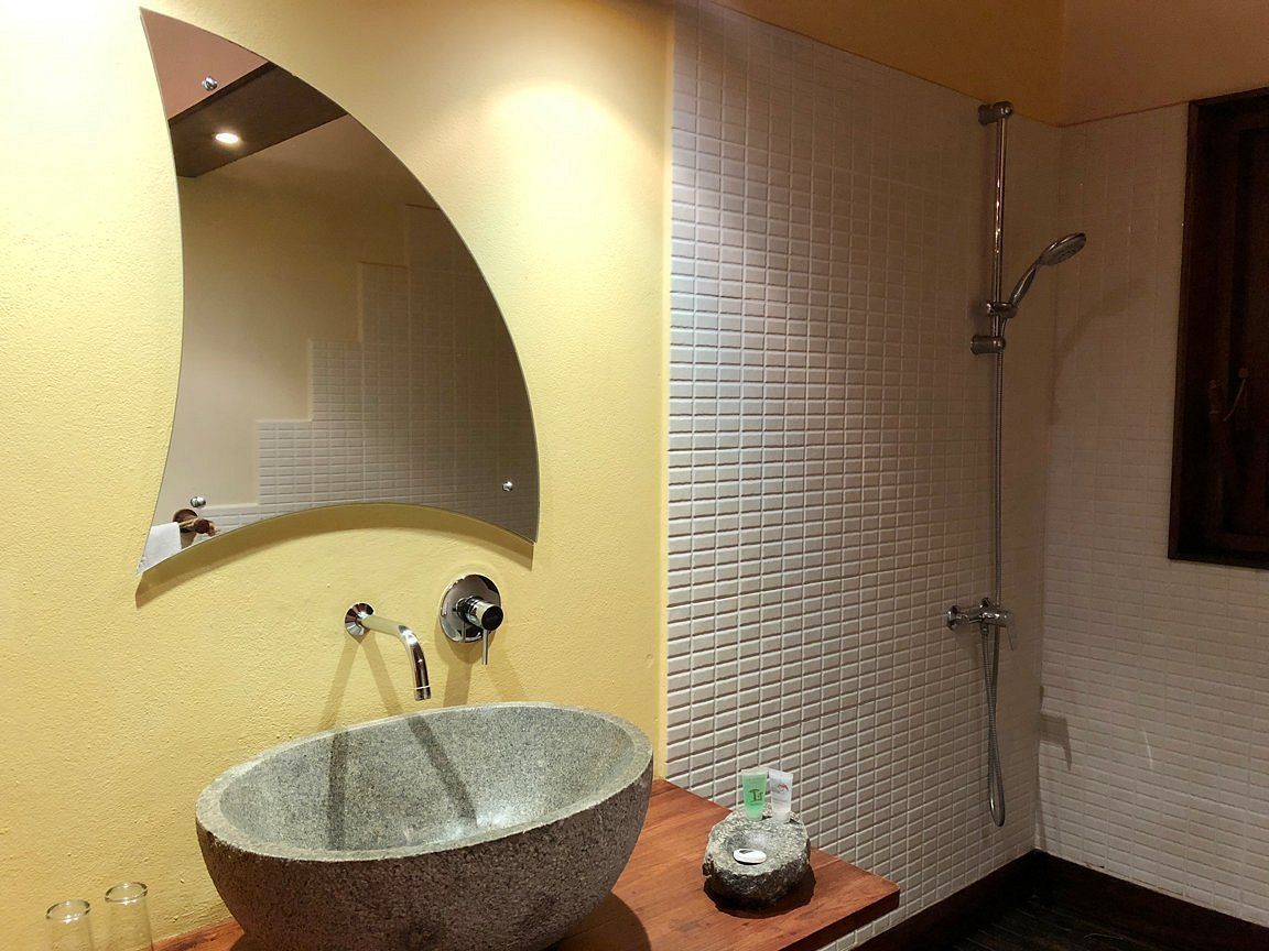 Les bungalows de 32 m², dispersés dans une cocoteraie, offrent une vue sur la mer et disposent d’une terrasse privée.