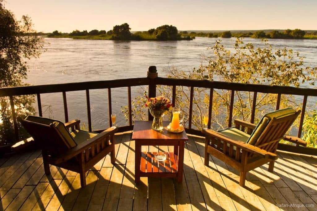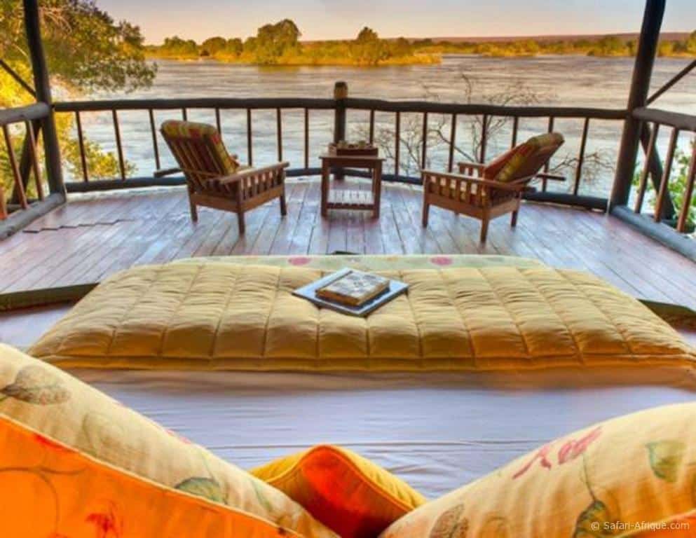 Le lodge est situé en amont du parc national de Mosi-oa-Tunya et des chutes Victoria, au cœur de deux îles privées sur le fleuve Zambèze.