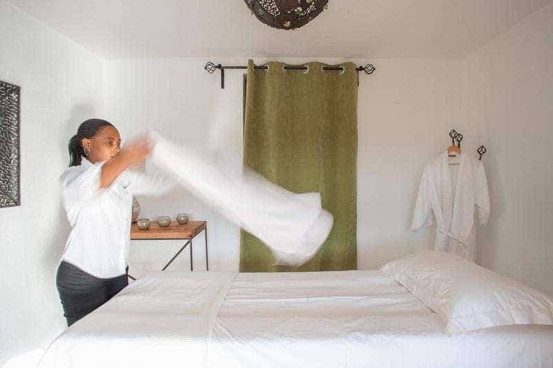 Le lodge dispose de 20 chambres spacieuses réparties dans des chalets au style colonial avec toits de chaume.