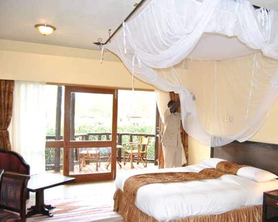 Le lodge dispose de 48 chambres équipées d’un grand lit avec moustiquaire, d’une salle de bain, d’un bureau avec miroir, d’une télévision et d’une connexion internet.