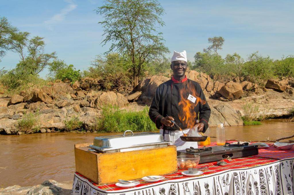 Situé sur les rives de la rivière Tsavo, à proximité du parc national.
