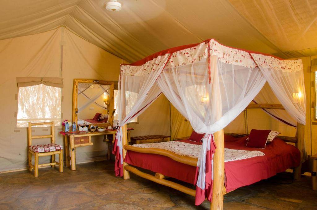 Le Man Eaters Camp est un camp de tentes de luxe offrant un cadre exceptionnel au bord de la rivière Tsavo.