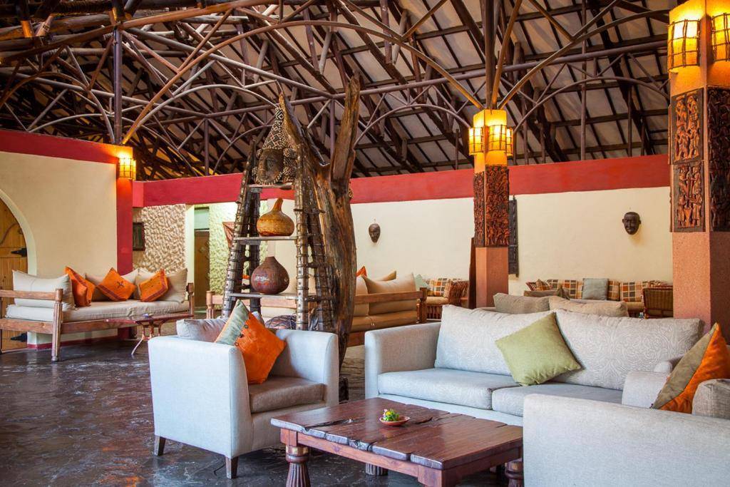 Un bar et un espace cheminée complètent l’expérience, avec un service assuré par une équipe masaï attentive.