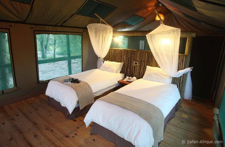 Le lodge propose 22 chalets de luxe, 10 tentes de luxe avec salle de bain ainsi que des emplacements de camping ombragés.