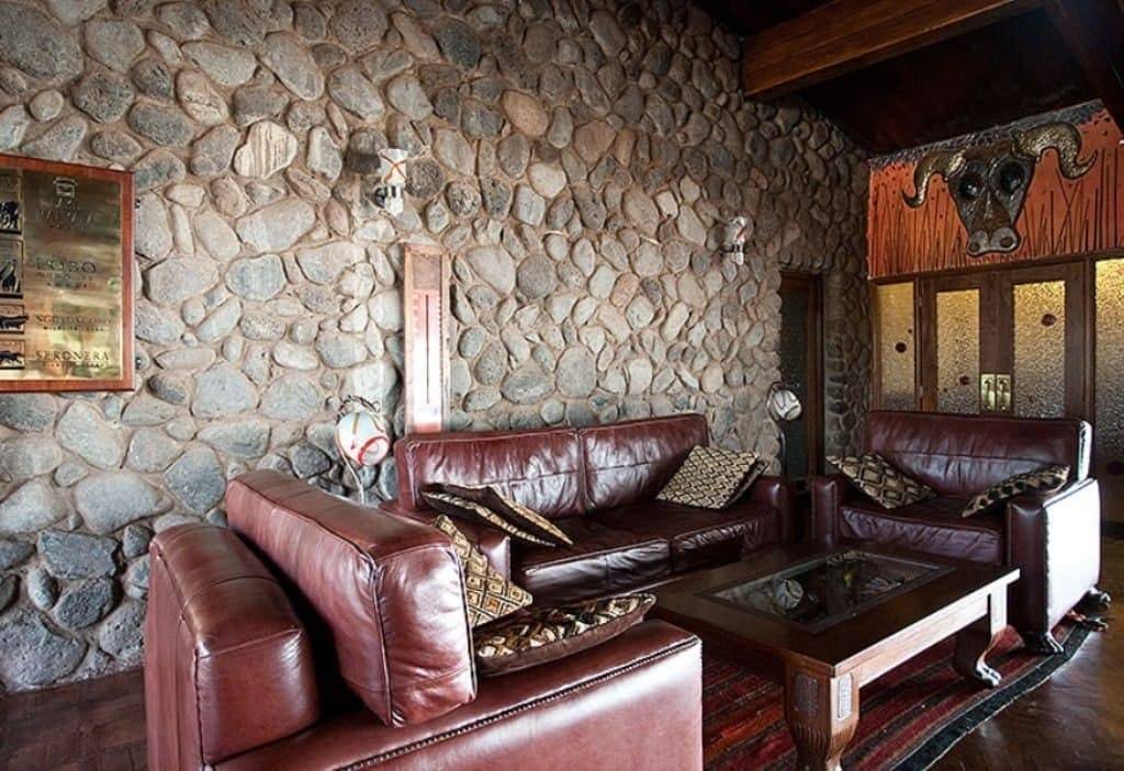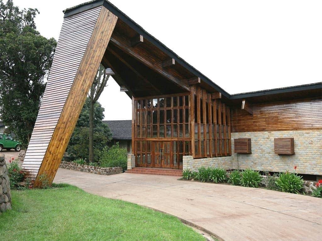 Le Ngorongoro Wildlife Lodge est élégamment construit en pierre naturelle et en bois local, s’intégrant parfaitement dans son environnement.