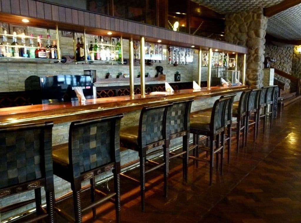 Un bar lounge permet de savourer un cocktail face au cratère, avec des jumelles mises à disposition pour observer la faune.