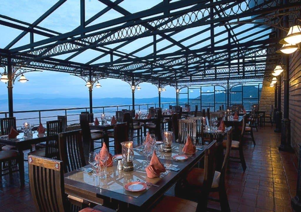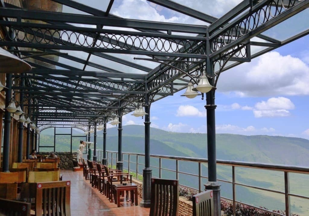 Situé sur le rebord du cratère du Ngorongoro, avec une vue plongeante sur le fond du cratère.