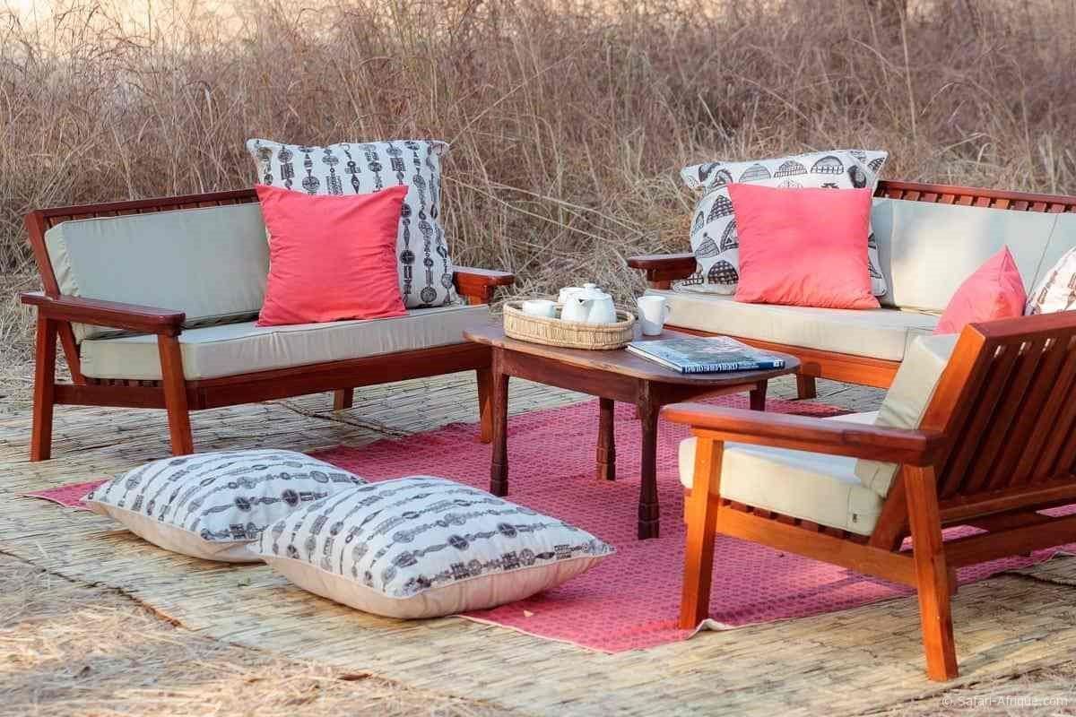 Chaque tente est équipée de lits encadrés en bois, de draps en coton blanc, d’un petit espace salon et d’un éclairage solaire.