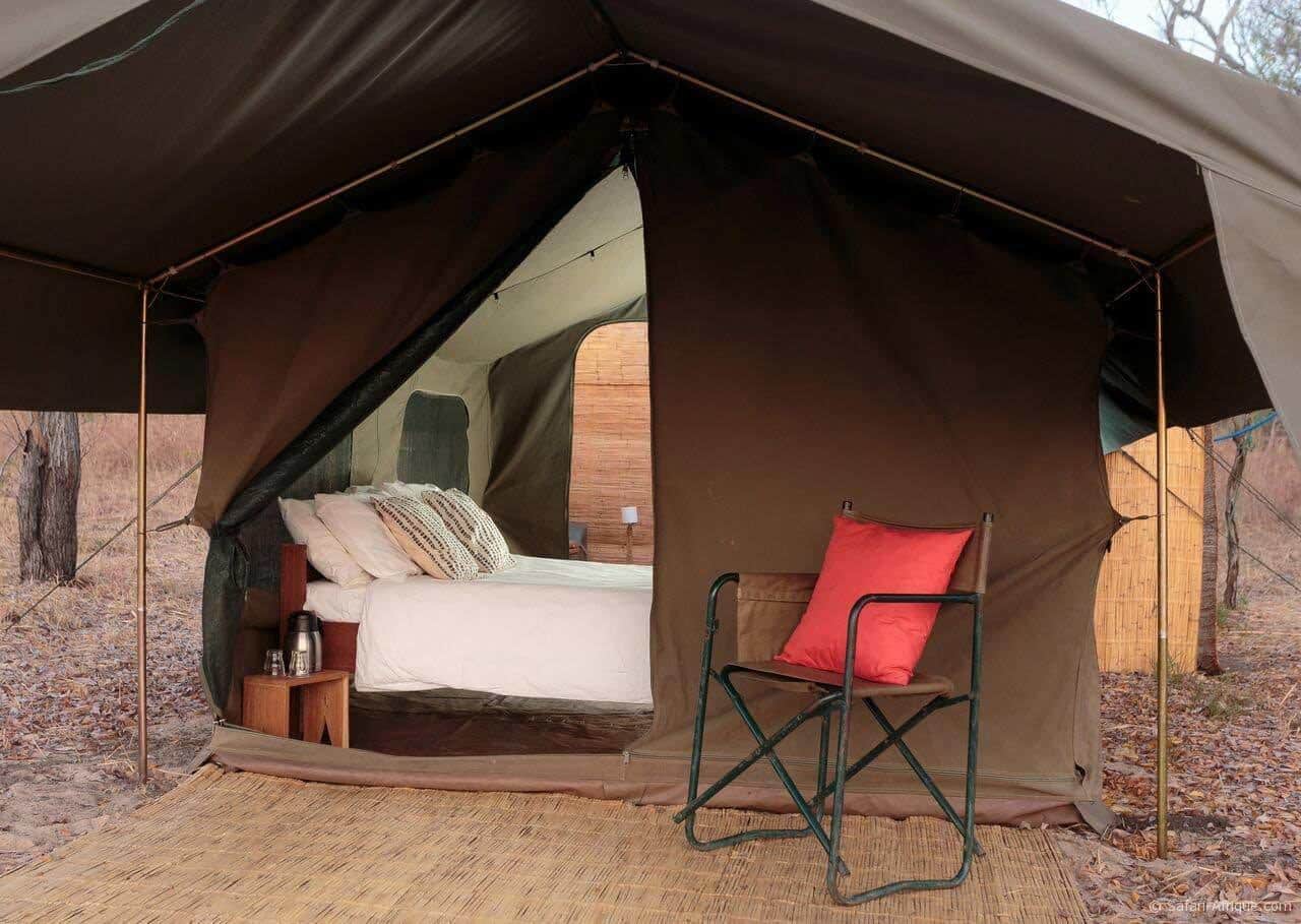 Le camp propose 4 tentes safari avec salle de bain, alliant confort et simplicité dans un esprit authentique.