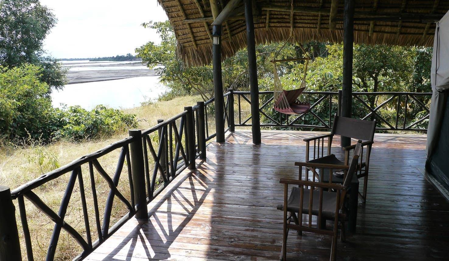 Le camp dispose d’une vingtaine de tentes confortables avec terrasse offrant une vue sur la rivière.