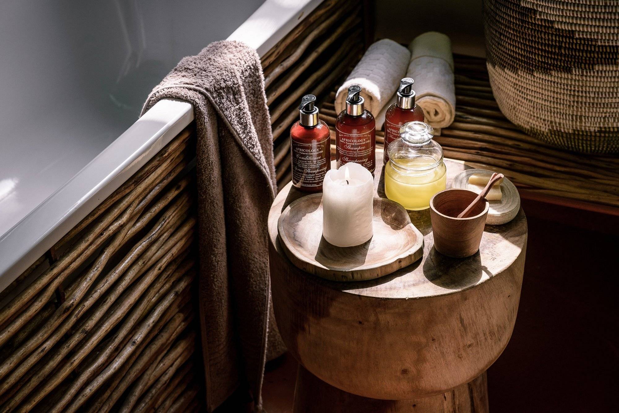 Chaque tente comprend une salle de bain privative équipée d’une douche et d’une baignoire profonde, avec vue sur la jungle environnante.