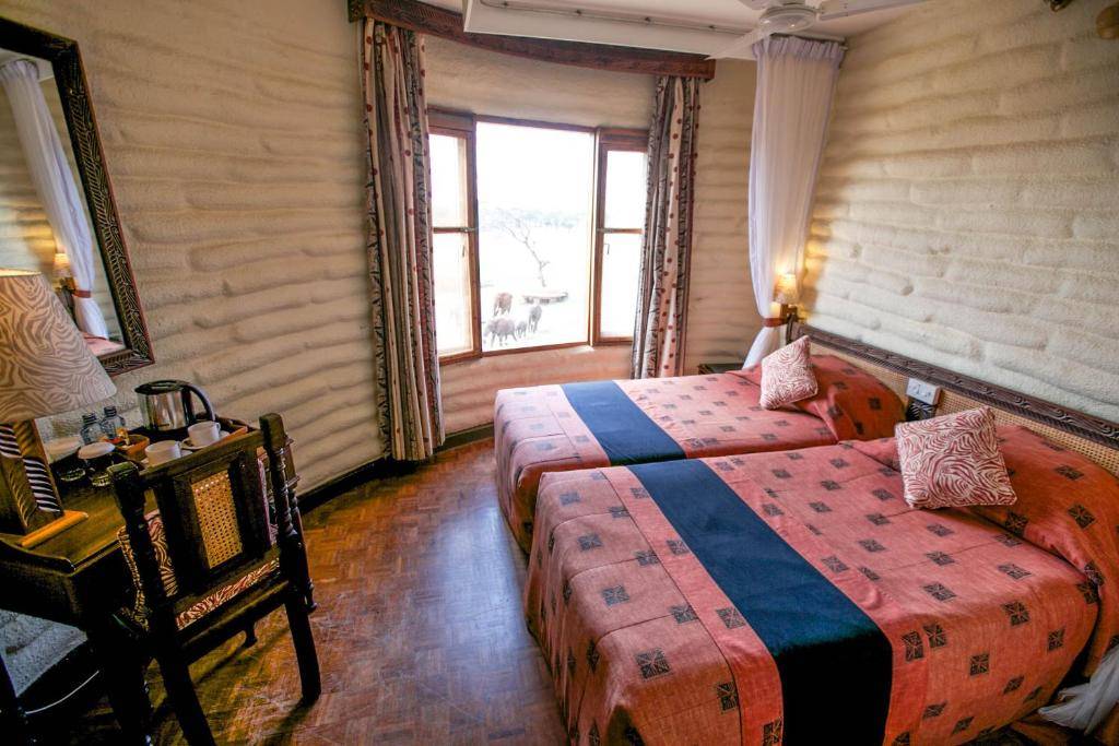 Le Sarova Salt Lick Lodge est un établissement unique situé dans une réserve privée de 28 000 hectares, offrant une immersion exceptionnelle au cœur de la faune africaine.