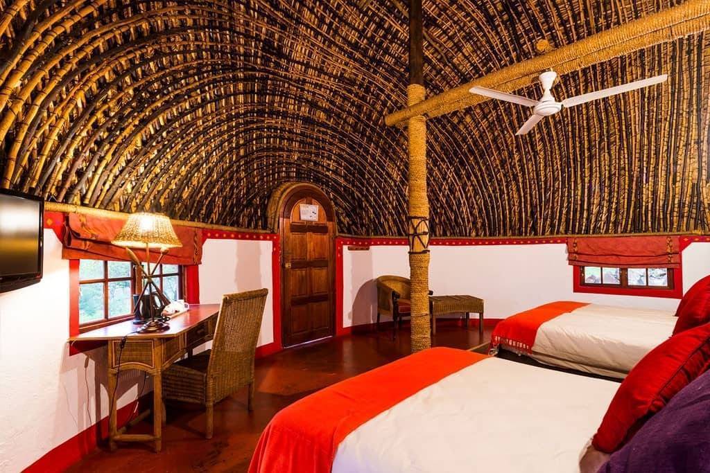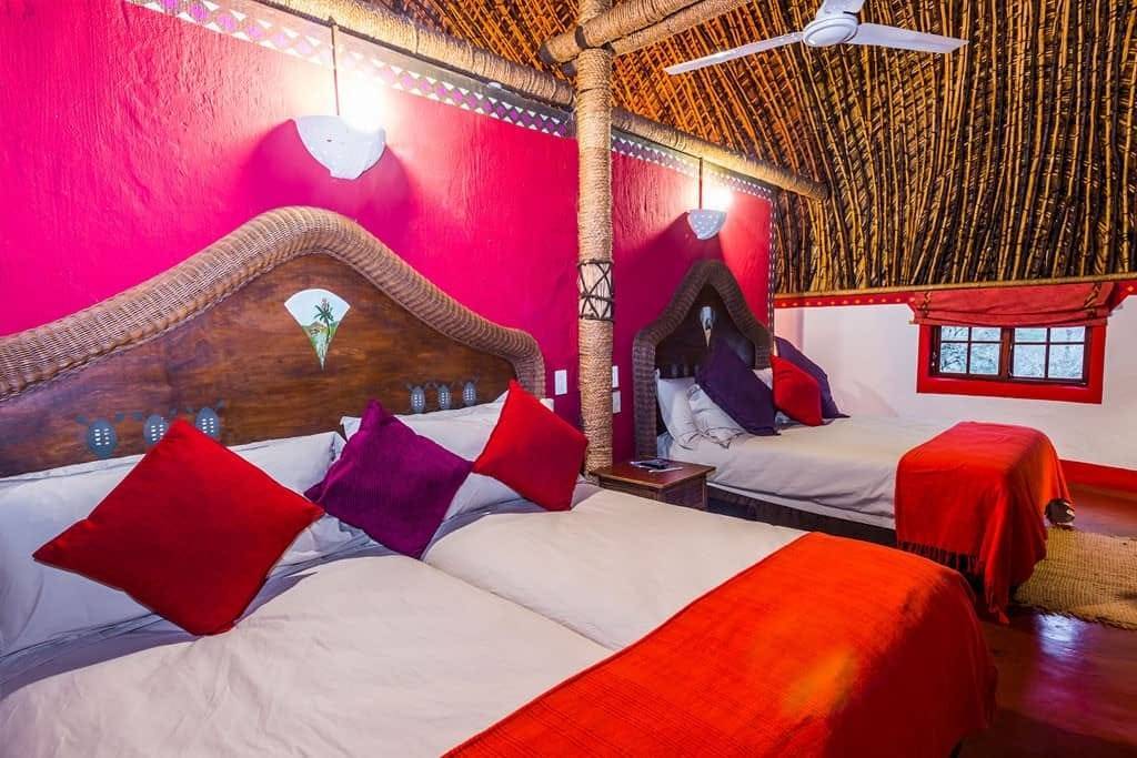 Cet établissement unique propose un hébergement traditionnel avec des huttes au toit de chaume, des intérieurs en bois et une ambiance chaleureuse typiquement africaine.