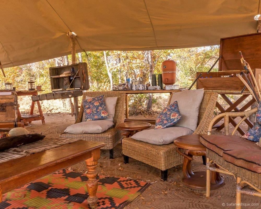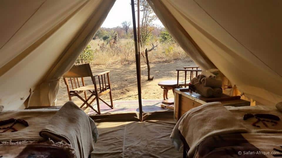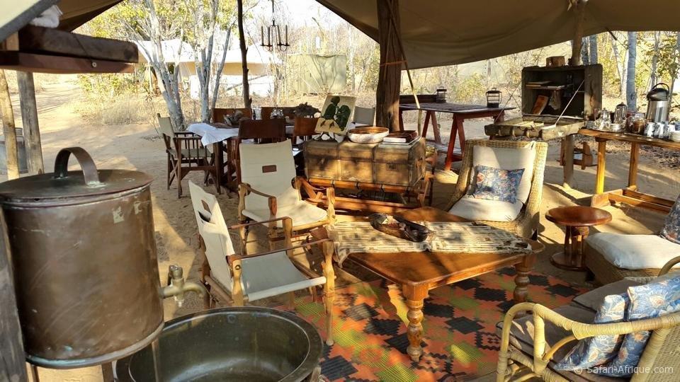 Composé de seulement 4 tentes de style vintage, le camp est entièrement ouvert sur la nature : aucune clôture ne sépare la concession du parc national, permettant à la faune de circuler librement.
