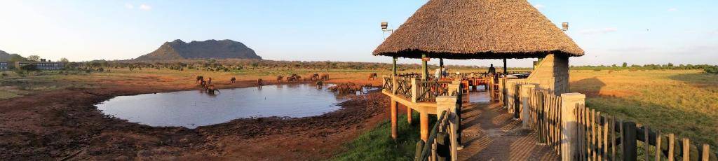 Situé dans les plaines de Tsavo Est, à environ 5 km de la route reliant Nairobi à Mombasa.