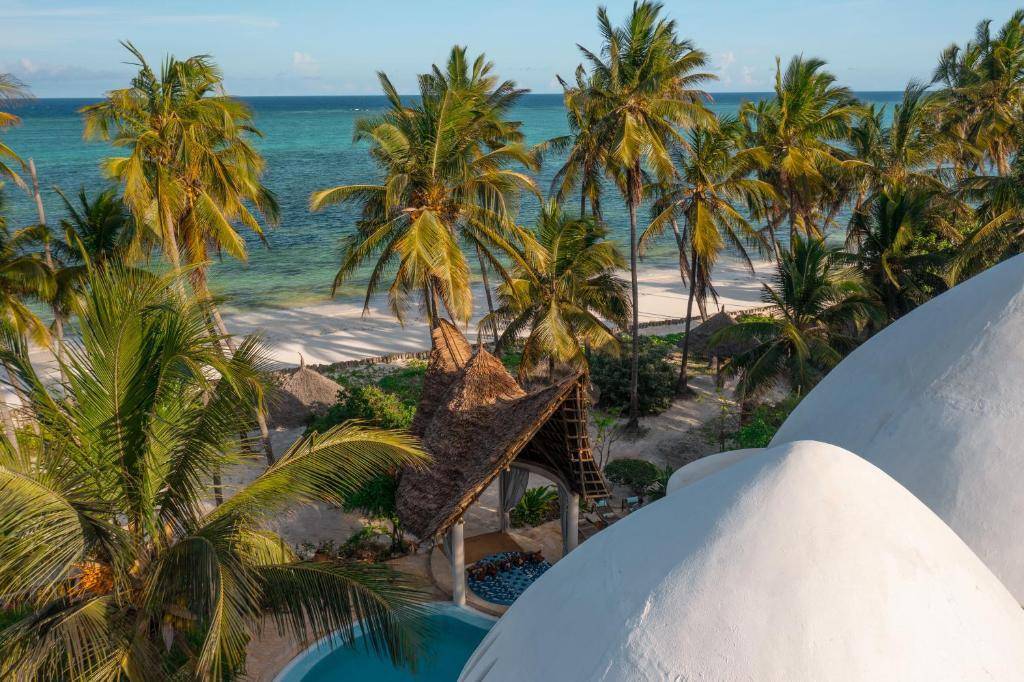 L’hébergement se compose de cabanes perchées dans les arbres et de chambres au sol, toutes avec toit de chaume et salle de bain privative.